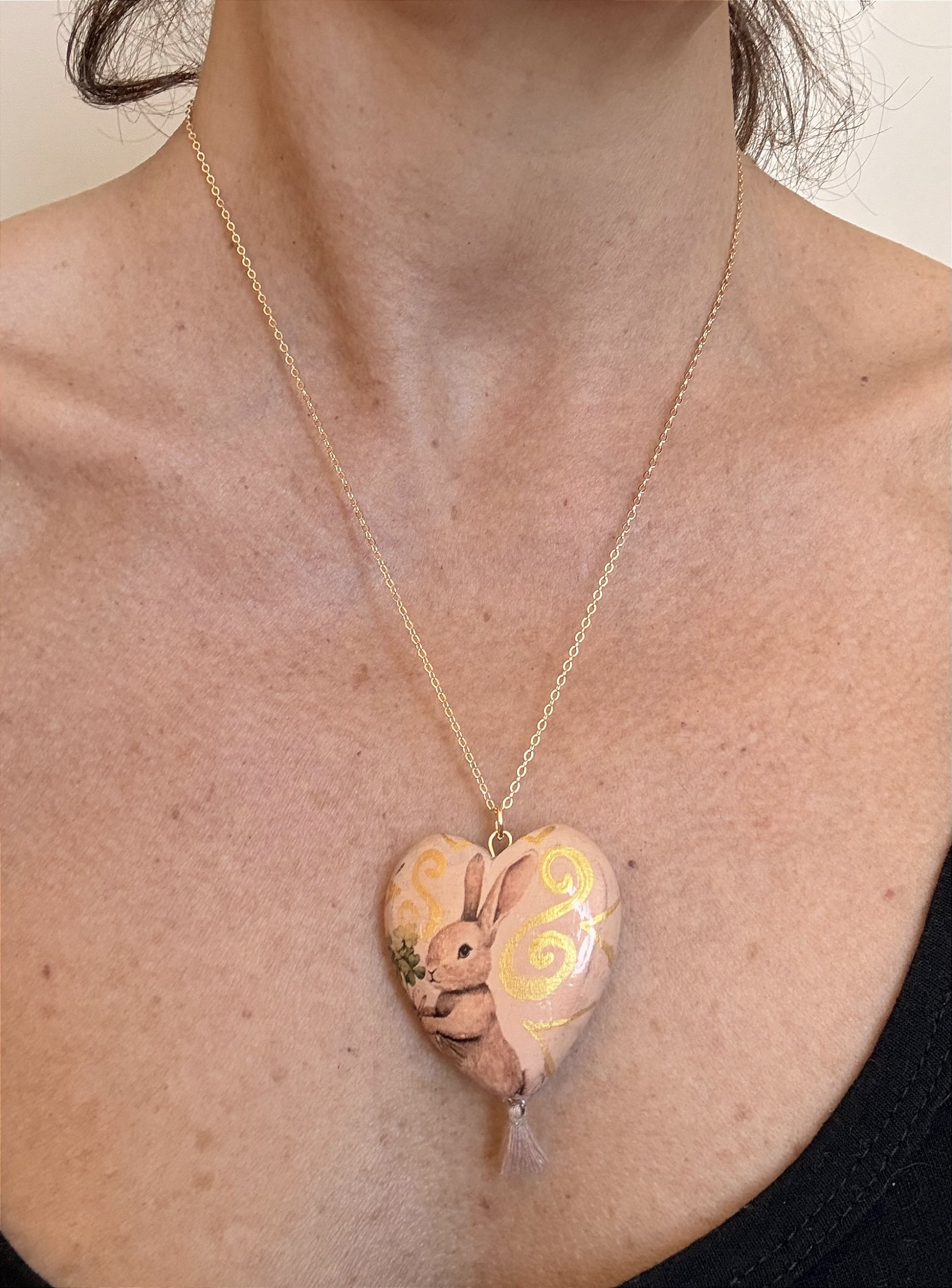 Pingente em madeira pintado e customizado à mão, 2,5cm.