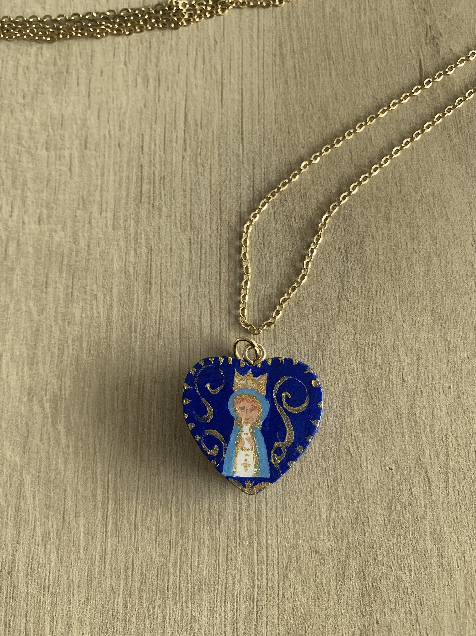 Coração em madeira 2cm com borda, pintado à mão com imagem da santinha.